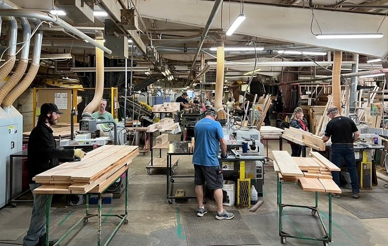 The factory has a lunchroom for employees. New employees receive access cards that serve as a pass to the factory;