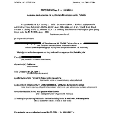 Work Permit and Supporting Document of Poland Lithuania Malta Croatia Romania Hungary